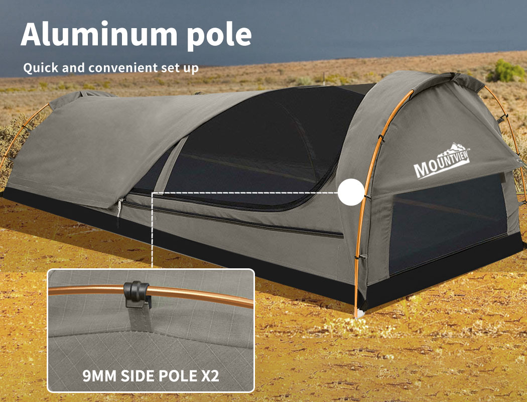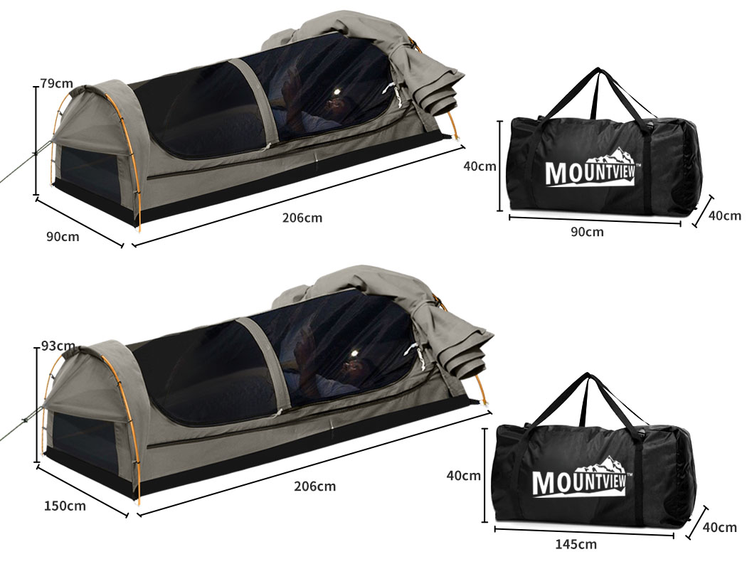Double King Single Swag Camping Swags Canvas Dome Tent Hiking Grey