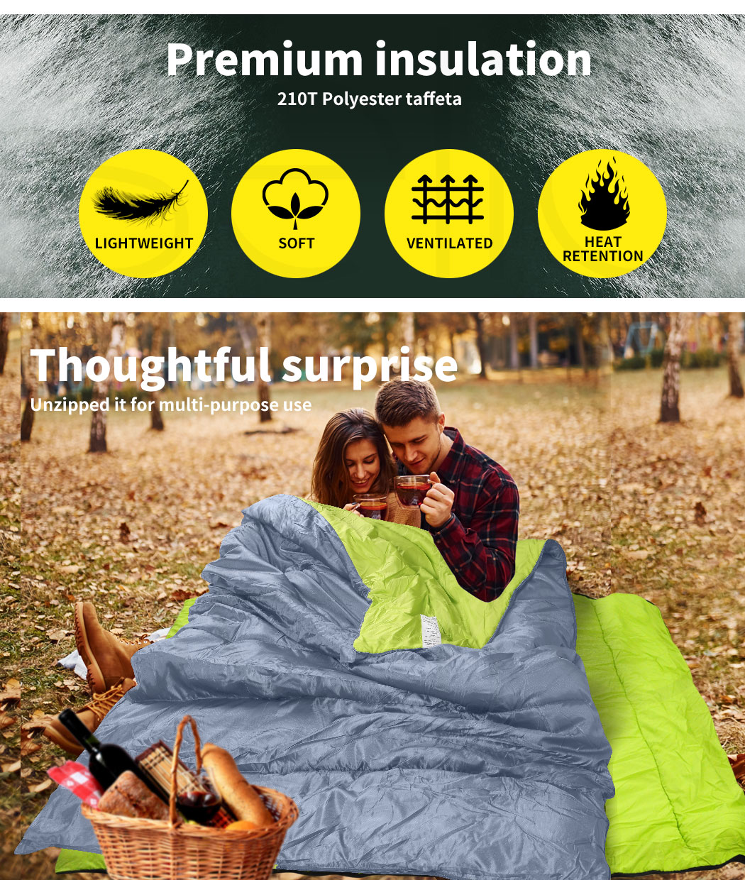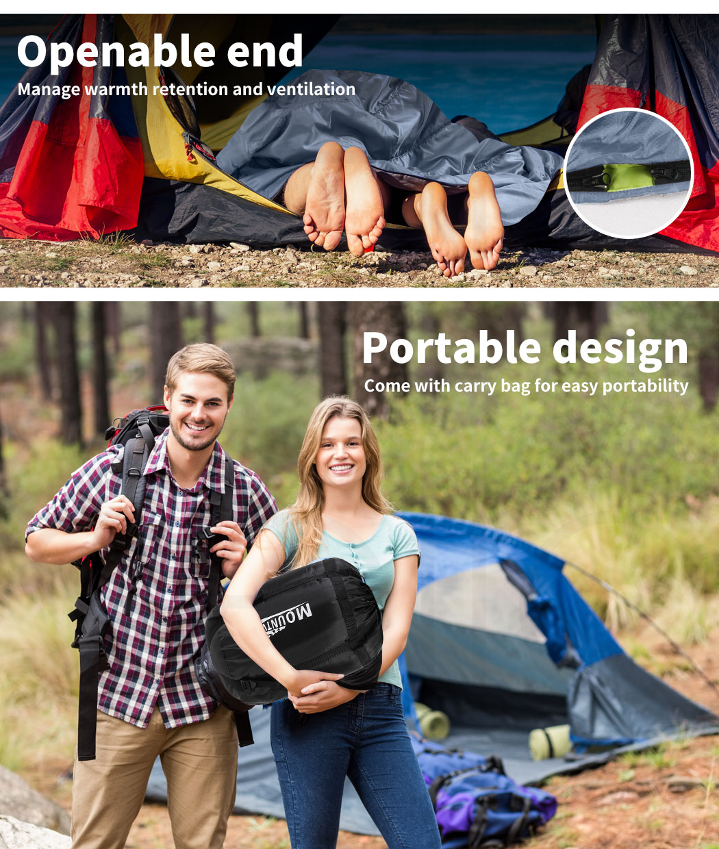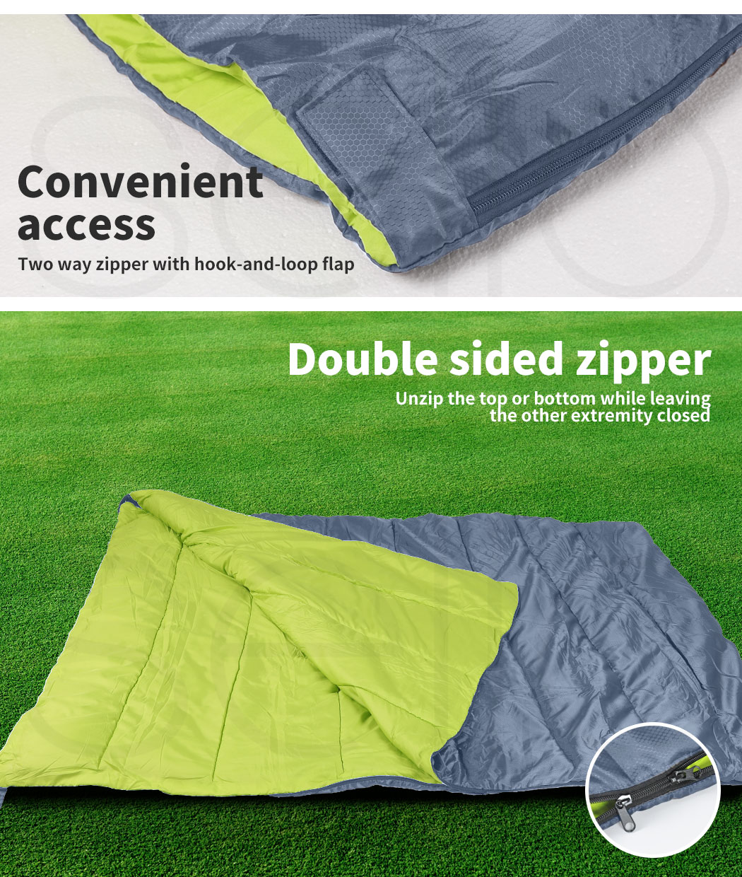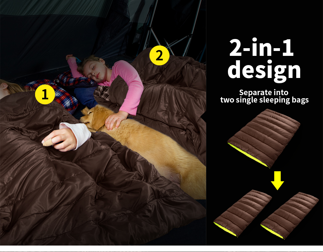 - Convert to two sleeping bags