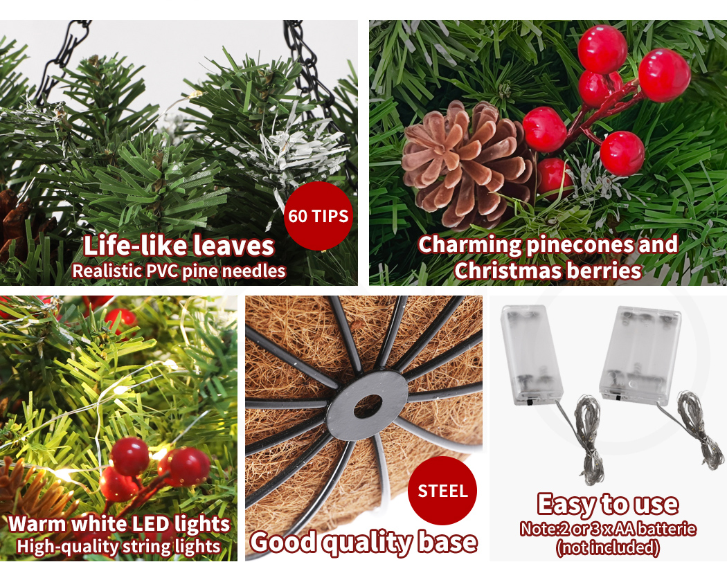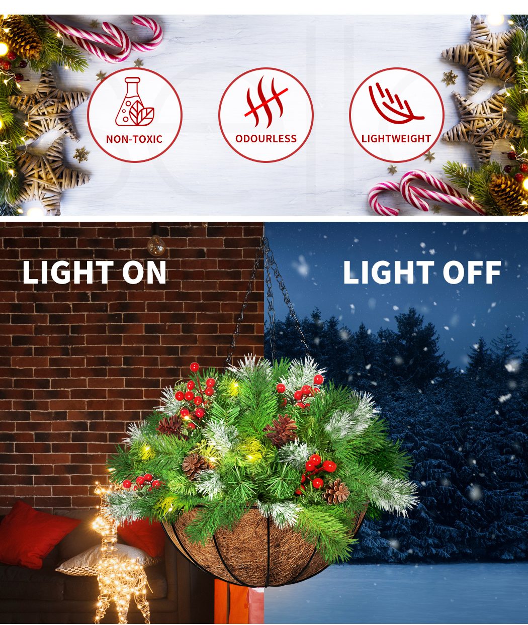 Christmas Hanging Basket Ornaments LED Lights Home Garden Porch Decor