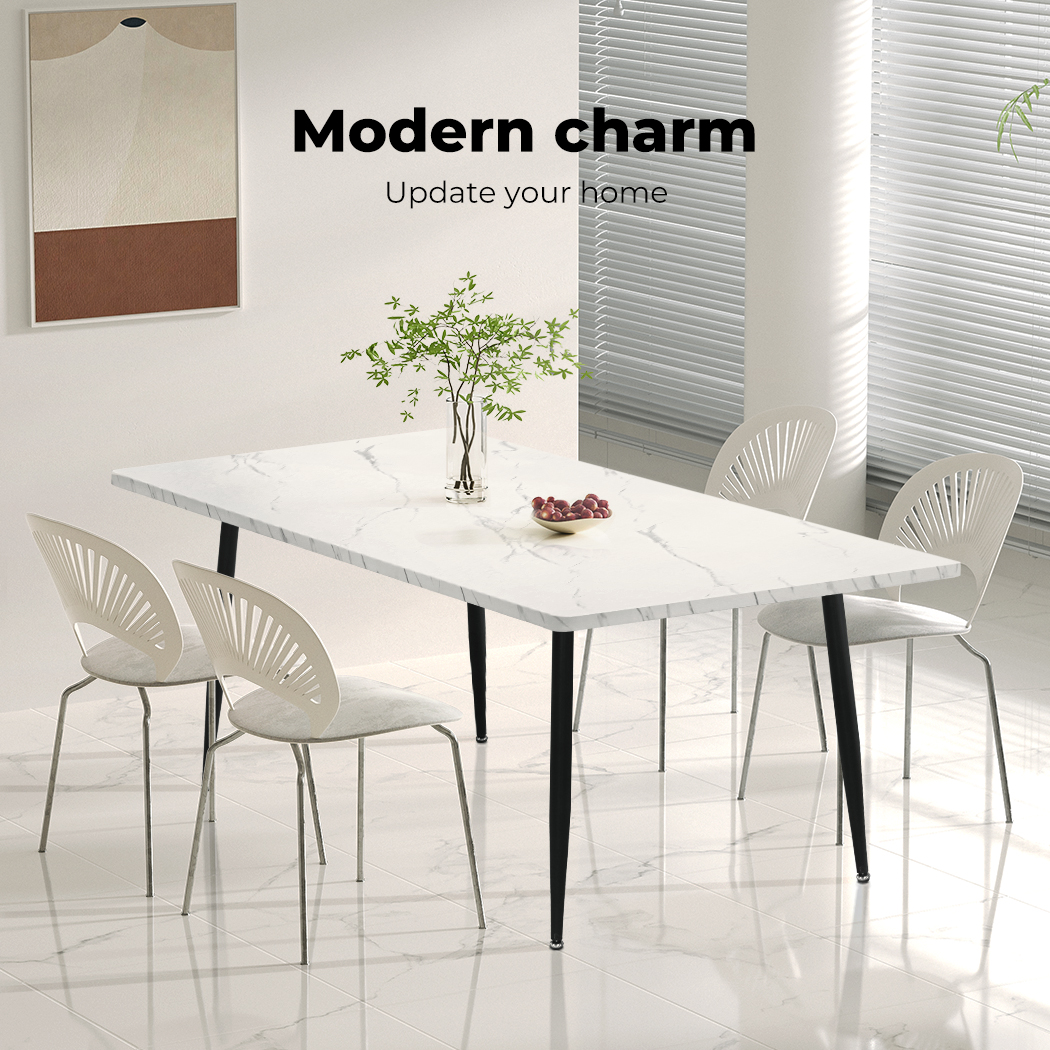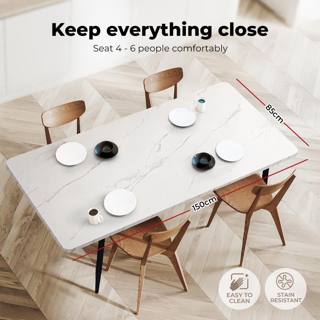 150cm Dining Table 6 Person Seater Marble Texture Steel Leg Home Office