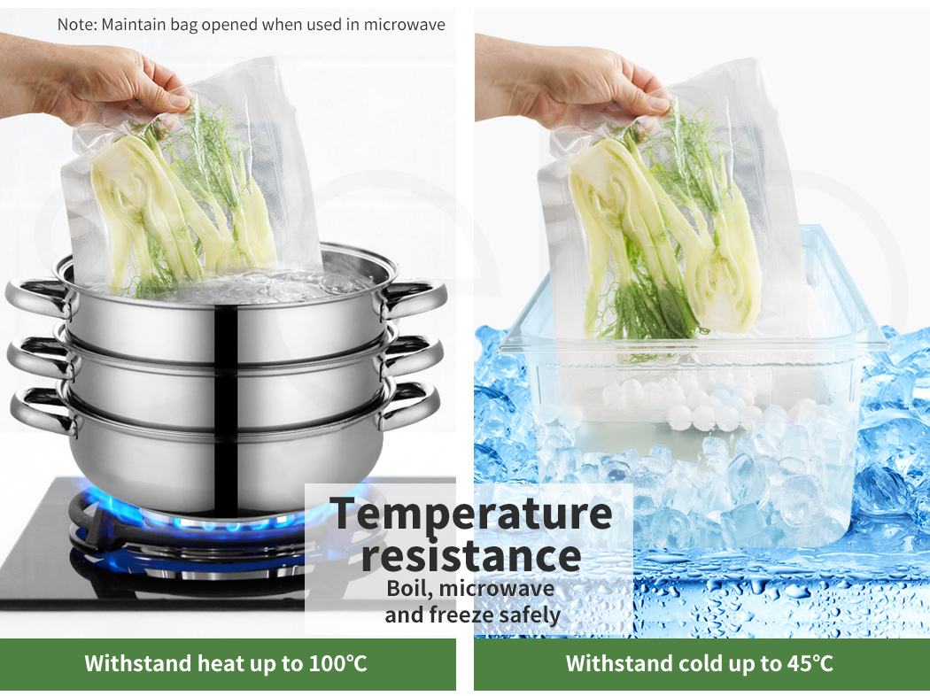 Too much food disposal? Want to keep food fresh and remain delicious? Our Food Vacuum Sealer Roll is the perfect solution for year-round food freshness. Made of BPA free and good grade material, it allows an airtight sealing for longer food preservation. 7-layer construction features a high barrier shrink vacuum to lock in its original flavour and nutrient. 180 Microns thickness with embossed surface yet temperature resistance. Gets yours today to speed up your preparation time.